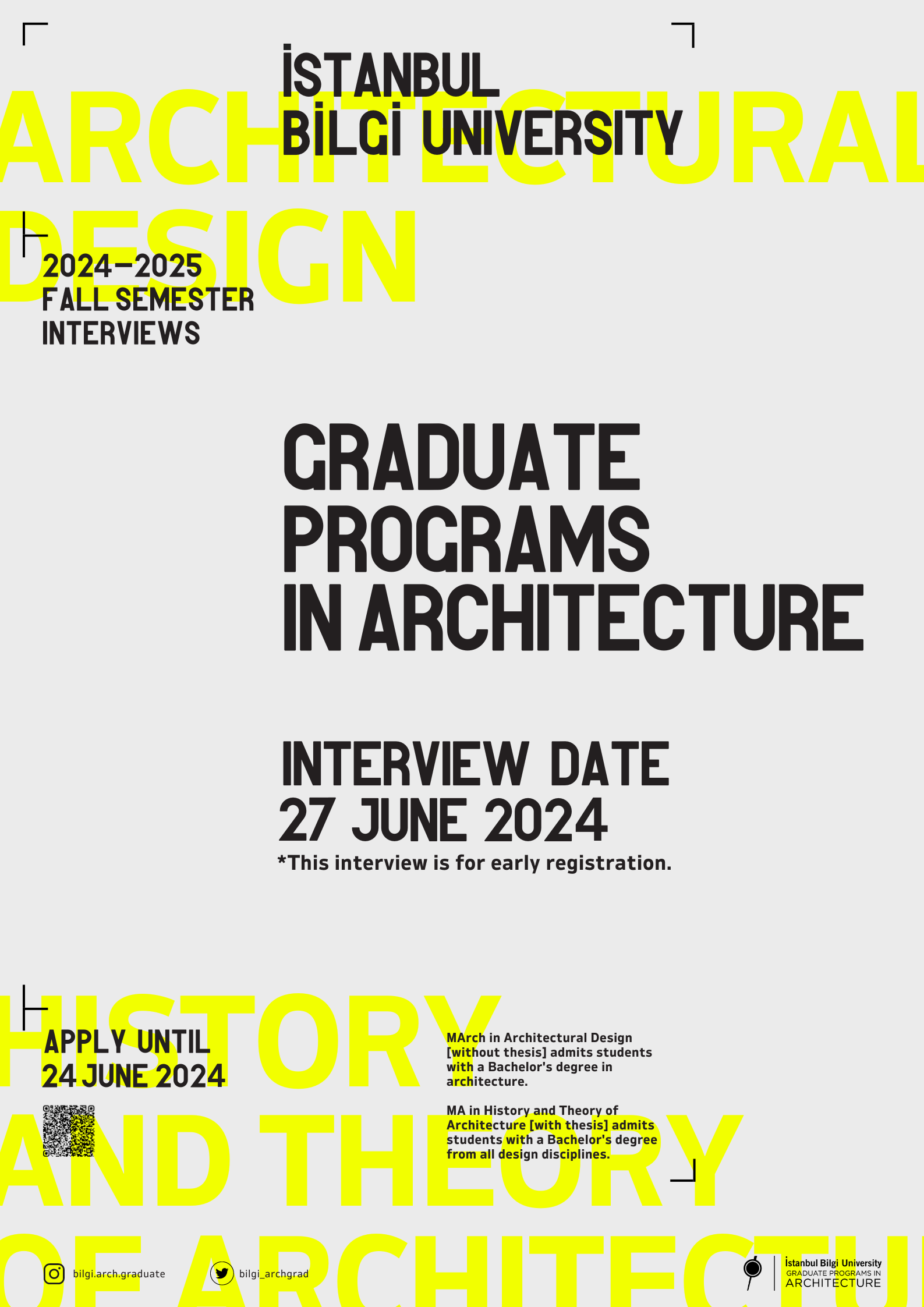The 2024-25 Fall Semester Early Registration Applications for BİLGİ Graduate Programs in Architecture are ongoing.