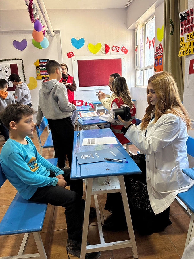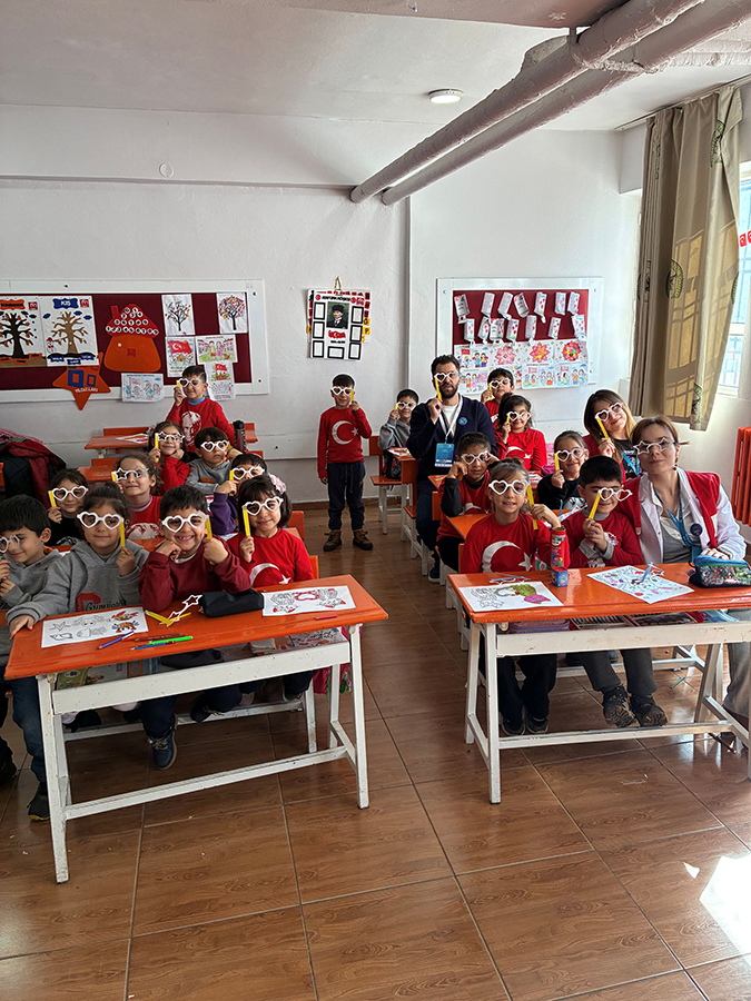 As part of the project titled “A Bright Life with Preventable Blindness,” led by our Opticianry Program, a vision screening for children was carried out at Gümüşgöze Primary School in the Defne district of Hatay.