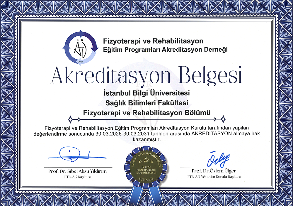 Fizyoterapi ve Rehabilitasyon Lisans Programımız, Fizyoterapi ve Rehabilitasyon Eğitim Programları Değerlendirme ve Akreditasyon Derneği (FTR-AD) tarafından 5 yıl süreyle tam akreditasyon aldı.