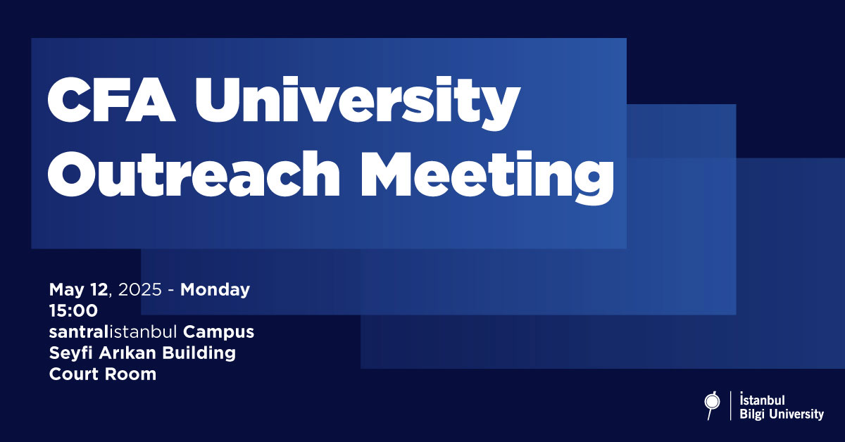 CFA Society İstanbul temsilcileri, 12 Mayıs Pazartesi günü saat 15.00’te İstanbul Bilgi Üniversitesi’nde düzenlenecek olan “CFA University Outreach Meeting” kapsamında öğrencilerle buluşacaktır. Etkinlikte CFA (Chartered Financial Analyst) unvanının kariyer gelişimine katkıları, sınav süreci ve global finans sektöründeki önemi üzerine bilgilendirme yapılacaktır. Aynı zamanda CFA Institute’un sunduğu kaynaklar ve öğrencilere yönelik fırsatlar da tanıtılacaktır. Toplantı, Seyfi Arıkan Binası’ndaki Mahkeme Salonu’nda gerçekleşecektir.