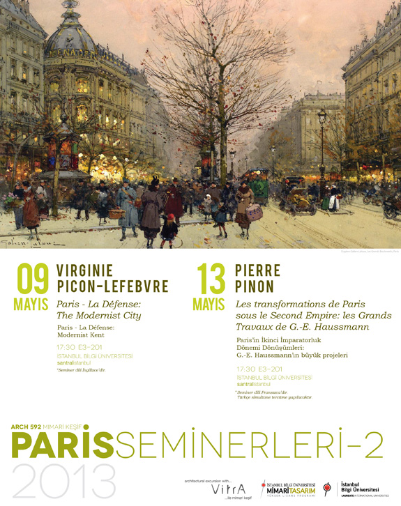 VitrA ve İstanbul Bilgi Üniversitesi’nin ortak projesi VitrA ile Mimari Keşif kapsamında, dünyanın kültür ve sanat başkenti Paris’in mimarisinin ele alınacağı iki seminer düzenlenecek. Üniversitenin Santral Kampüsü’nde saat 17:30’da başlayacak seminerlerin ilkinde, kent tarihçisi, mimar Virgine Picon-Lefebvre konuk edilecek. 9 Mayıs’taki seminerde, Paris’in La Dèfense bölgesi ele alınacak. 13 Mayıs’ta seminer verecek mimarlık tarihçisi, kuramcı Pierre Pinon ise, 1852-1870 yıllarını kapsayan ikinci imparatorluk döneminde Paris’te Baron Georges-Eugène Haussmann tarafından gerçekleşen kentsel dönüşümü anlatacak.