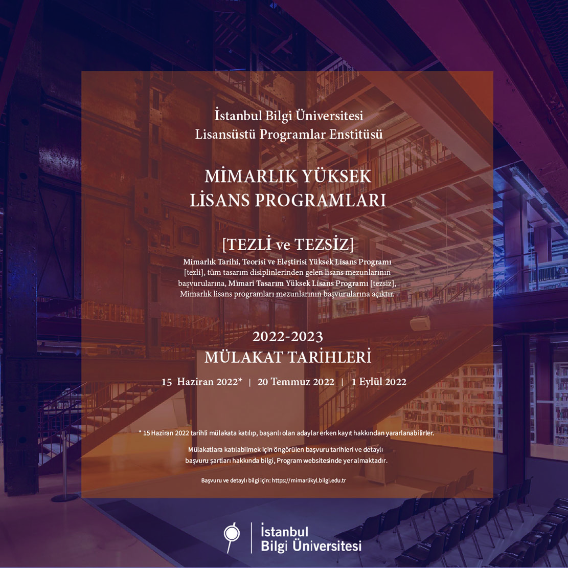 Bilgi Üniversitesi Mimarlık Yüksek Lisans Programları 2022-23 Akademik Yılı başvuruları
