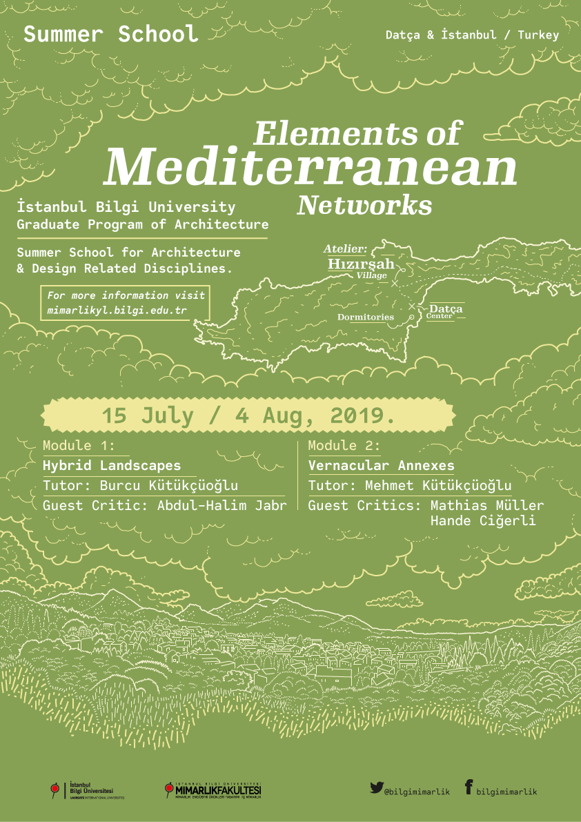 İstanbul Bilgi Üniversitesi Mimari Tasarım Yüksek Lisans Programı’nın düzenlediği Yaz Okulu’nun dördüncüsü; 15 Temmuz- 04 Ağustos 2019 tarihleri arasında gerçekleşecektir.