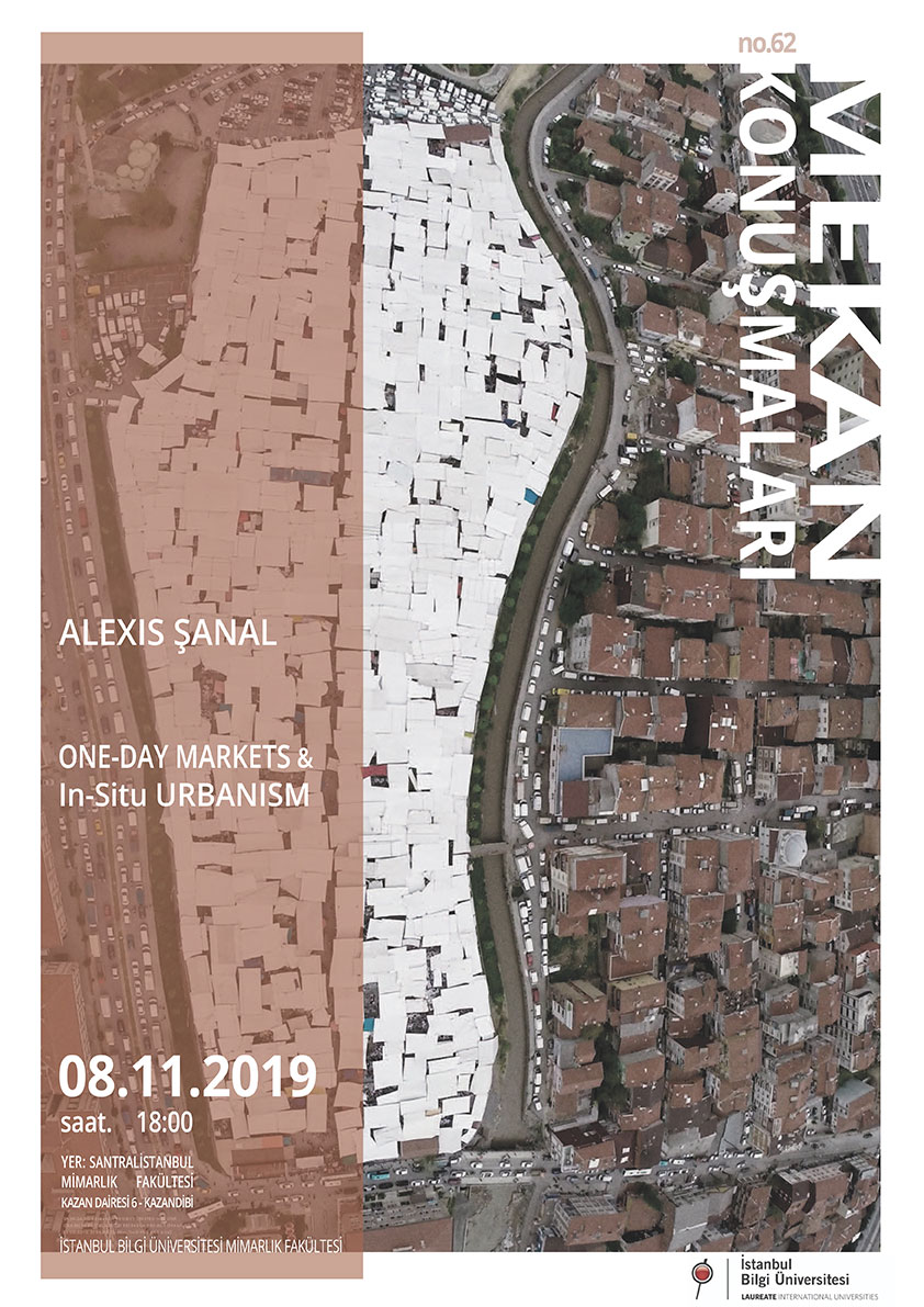 Konuşma Konusu: "One-Day Markets & In-situ Urbanism " Yer: İstanbul Bilgi Üniversitesi Mimarlık Bölümü, Kazandibi Santral İstanbul Tarih: 8.11.2019 Cuma Saat: 18.00