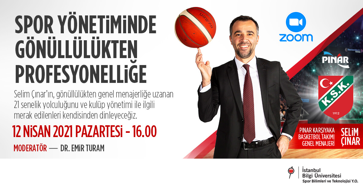 BİLGİ Spor Yöneticiliği Bölümü, “Spor Yönetiminde Gönüllükten Profesyonelliğe” panelinde Pınar Karşıyaka Basketbol Takımı Genel Menajeri Selim Çınar’ı ağırladı. Panel, Spor Yöneticiliği Bölümü Öğretim Görevlisi Dr. Emir Turam’ın moderatörlüğünde gerçekleşti. Çınar, gönüllülükten menajerliğe uzanan 21 senelik yolculuğunu ve kulüp yönetimiyle ilgili öğrencilerin merak ettikleri soruları yanıtladı.